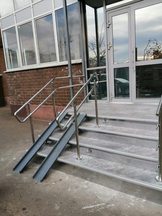 Ограждения пандуса из полированной нержавеющей стали AISI-304. Стойки труба d=38мм.