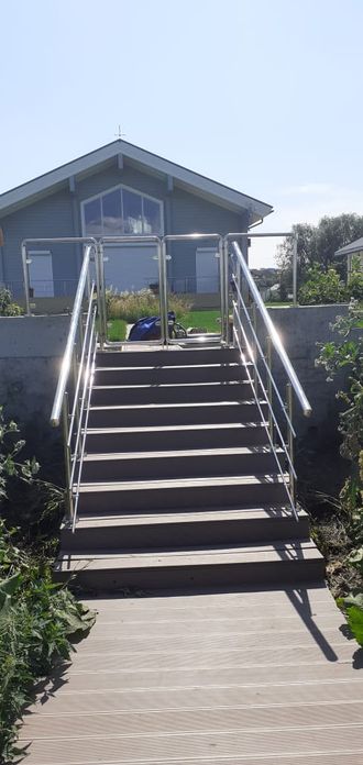 Изготовление и монтаж ограждений из нержавеющей стали AISI-304, заполнение стекло;