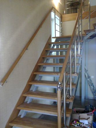 Комбинированные лестничные перила монтируются на модульные лестницы, бетонные марши,а также на лестницы из бетона и дерева/
