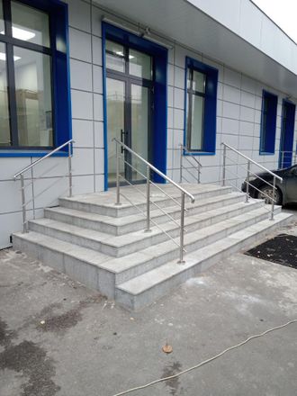 Изготовление и монтаж перил из нержавеющей стали AISI-304, которые подходят для установки по любому участку, как внутри помещения так и на улице (как на фото).