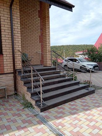 Изготовление и монтаж перил из нержавеющей стали AISI-304, которые подходят для установки по любому участку, как внутри помещения так и на улице (как на фото).
